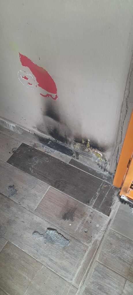 Thankfully, no people or animals were hurt (huge win). We were incredibly lucky, especially considering an electrical fire decided to make a brief appearance in Luna’s room. The fire knocked out the internet and the downstairs lights, which at least caught Rojda’s attention and alerted her to the outage. The less lucky part? The fire damage to the wall didn’t reveal itself until morning light told all.