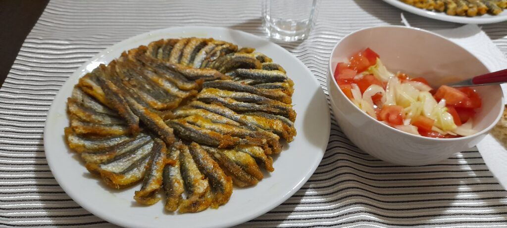 By the time we reached Nuri’s house four hours later, I discovered it also comes with two street dogs who have basically moved in. Dinner was fresh sardines with tomato and onion salad — simple and delicious.