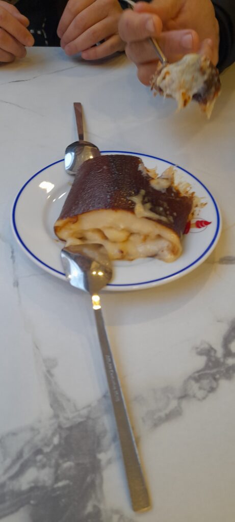 I was spoiled with a feast, starting with a Muradiye cookie made of tahini and molasses—absolutely divine. Then came lentil and butter soup (big yes!), followed by slivered beef with eggplant and yoghurt (a polite yes it way okay, beef yuk). But dessert totally redeemed the universe: Kazandibi. Creamy, sweet, dreamy… I could write poetry about that pudding.
